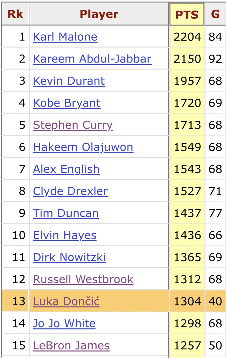13. 盧卡-東契奇——1304分—40場(chǎng)—32.6分