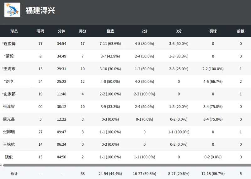 福建U19男籃:連俊博17分、分川劉李12分、流言籃張淳智10分