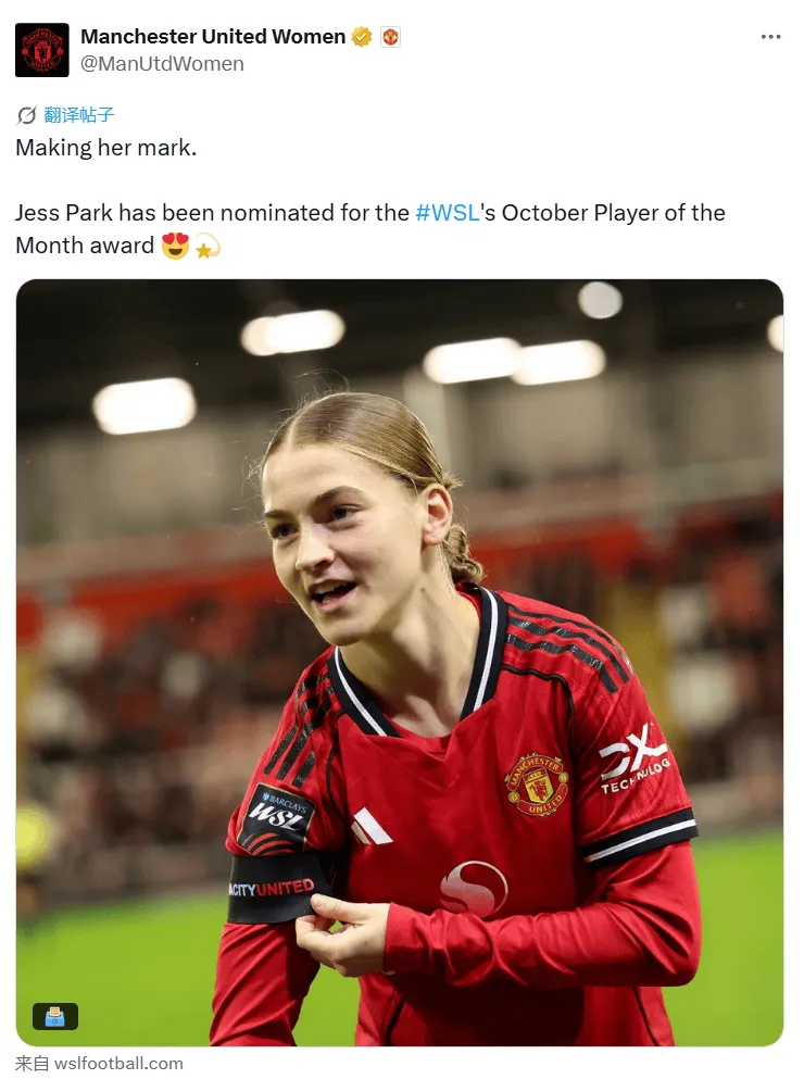 女隊的Jess Park提名聯(lián)賽十月最佳球員