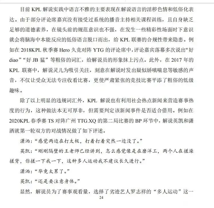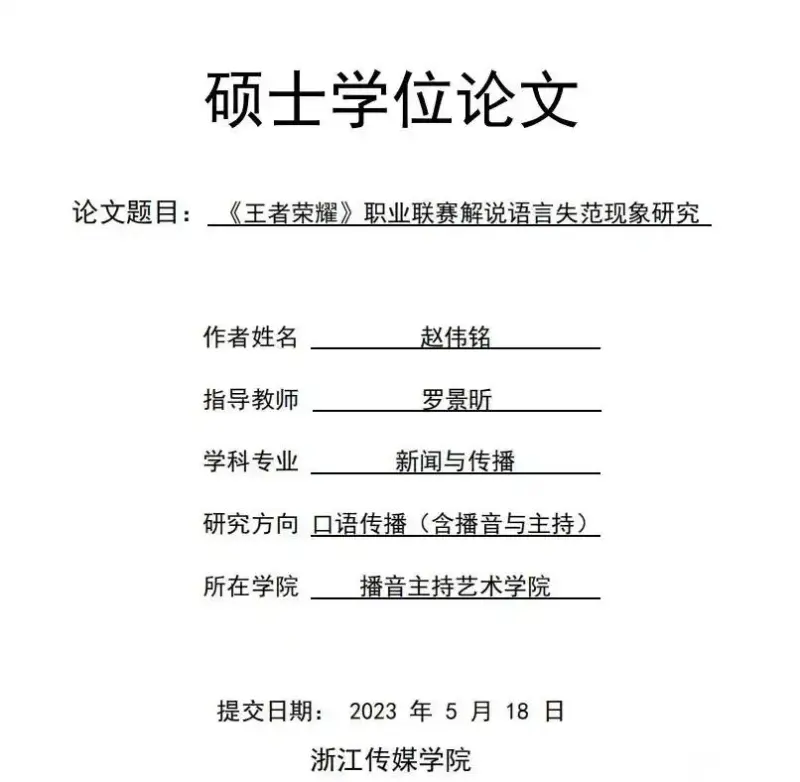 王者解說(shuō)語(yǔ)言失范現象被作為碩士課題研究,什么水平?
