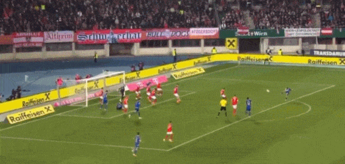 第12分鐘,頭球塔巴科維奇搶點(diǎn)攻破了奧地利的搶點(diǎn)球門(mén)。