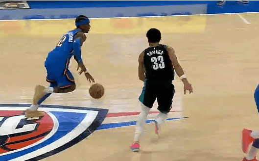 第一節比賽中,坐地亞歷山大強突卡馬拉打成2+1已經(jīng)拿到11分,怒吼隨后坐地怒吼慶祝。亞歷