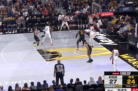 虎撲11月22日訊 NBA杯小組賽,開(kāi)拓者對陣勇士的庫里比賽正在進(jìn)行中。