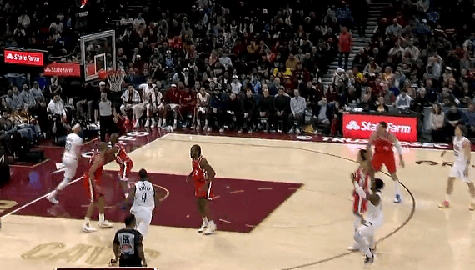 比賽的再中第四節,米切爾三分干拔再中,騎士騎士將分差拉開(kāi)到18分打??齑?。將分