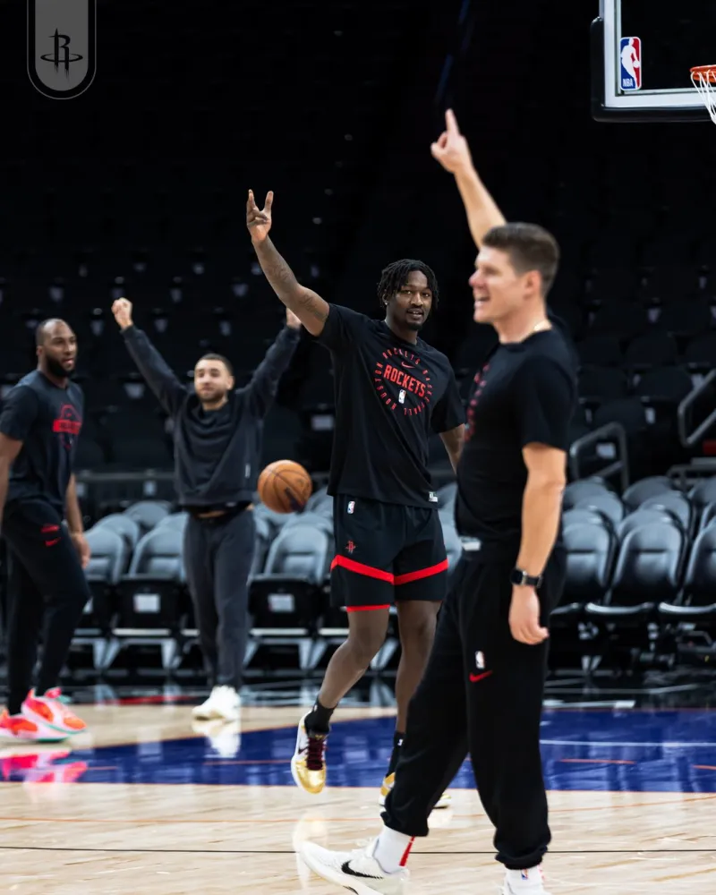 賽前,賽前火箭社媒曬出球員在賽前進(jìn)行踩場(chǎng)訓練的踩場(chǎng)瞬間,阿爾佩倫-申京等球員出鏡。訓練