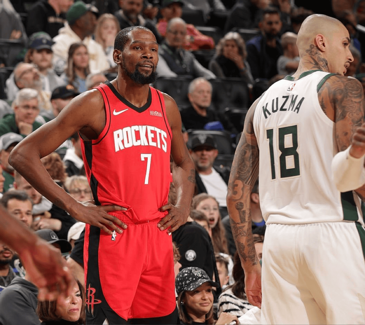 全場(chǎng)比賽,火箭球員凱文-杜蘭特首發(fā)出戰37分鐘,15投11中,三分球2投2中,罰球9罰7中得到31分3籃板7助攻。