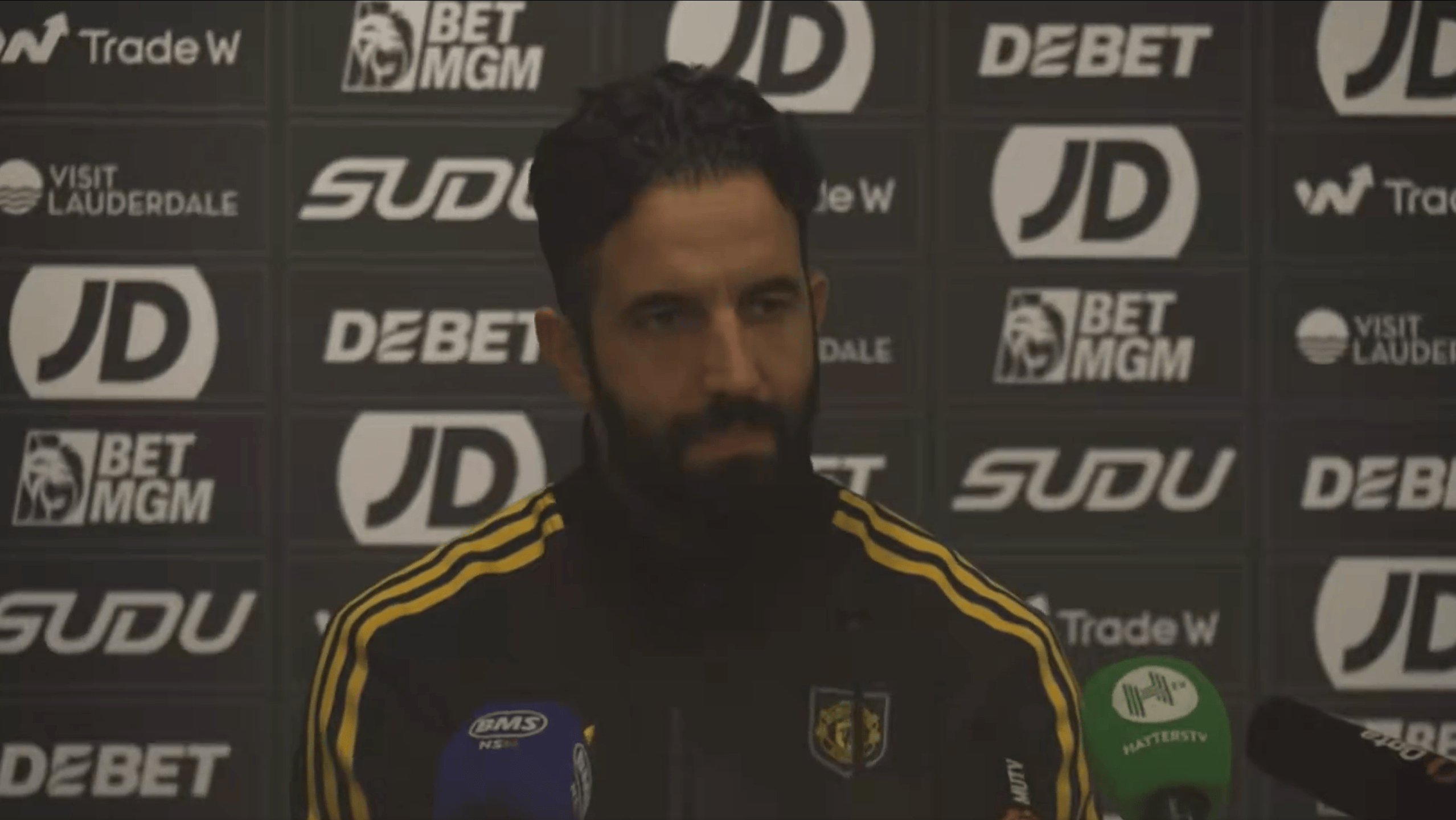 虎撲12月09日訊 英超第15輪,曼聯(lián)在客場(chǎng)以4 - 1的比分戰勝狼隊。賽后,紅魔主帥阿莫林現身新聞發(fā)布會(huì ),接受媒體提問(wèn)。