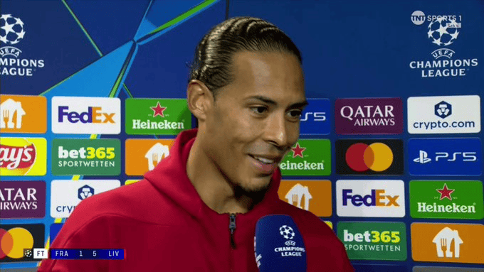 虎撲10月23日訊 利物浦隊長(cháng)范戴克在5-1擊敗法蘭克福的賽后,接受TNT Sport采訪(fǎng)。