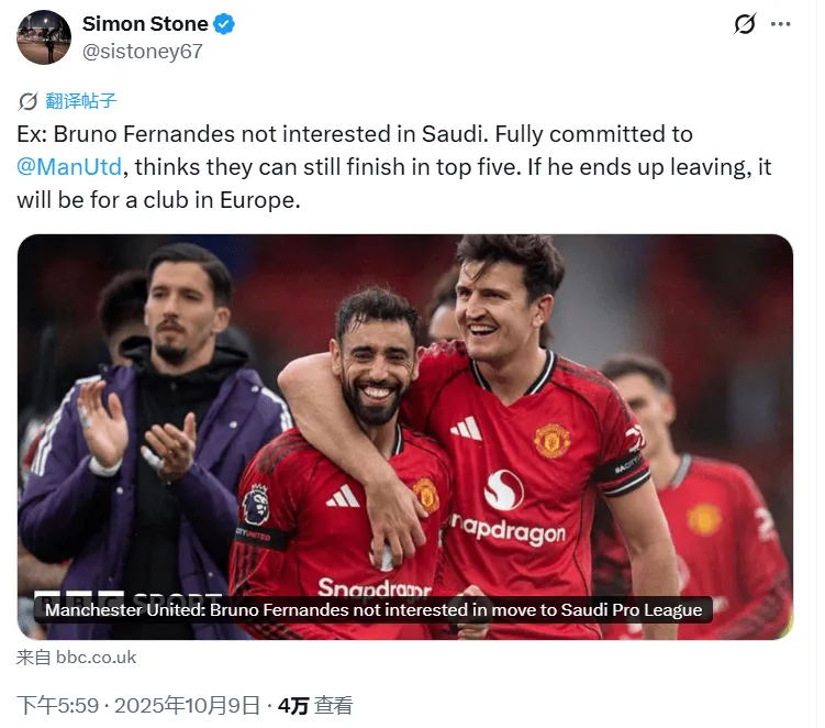 石頭:B費無(wú)意加盟沙特聯(lián)賽,目前全心投入曼聯(lián),認為球隊仍有望躋身英超前五。若他最終離隊,也只會(huì )加盟歐洲的俱樂(lè )部。