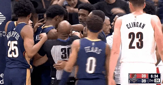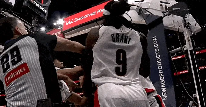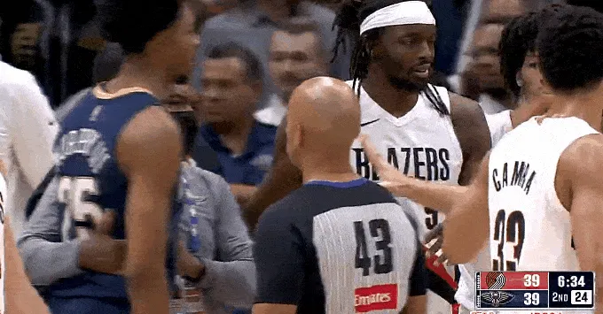 第二節比賽中,籃下拉拽格蘭特和米西籃下互相拉拽爆發(fā)沖突,互相回看后直裁判回看錄像后直接驅逐米西和格蘭特,沖突裁判同時(shí)吹罰赫伯特-瓊斯和謝登-夏普技術(shù)犯規。接驅