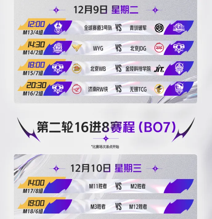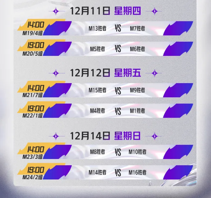 比賽時(shí)間:12月6日-12月9日單敗淘汰賽第一輪32進(jìn)16,程出次日12月10日-12月14日單敗淘汰賽第二輪16進(jìn)8;