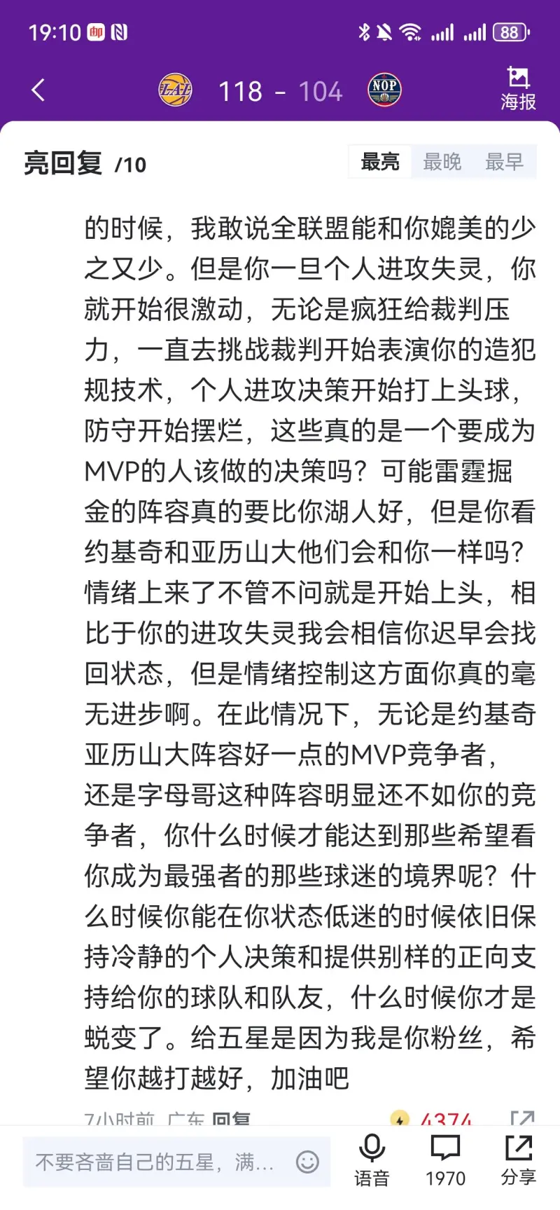 這是最近最貼我最近看到最貼切的,對077的最近最貼評價(jià)由詹姆斯40歲正是闖的年紀 發(fā)表在湖人專(zhuān)區 https://bbs.hupu.com/lakers