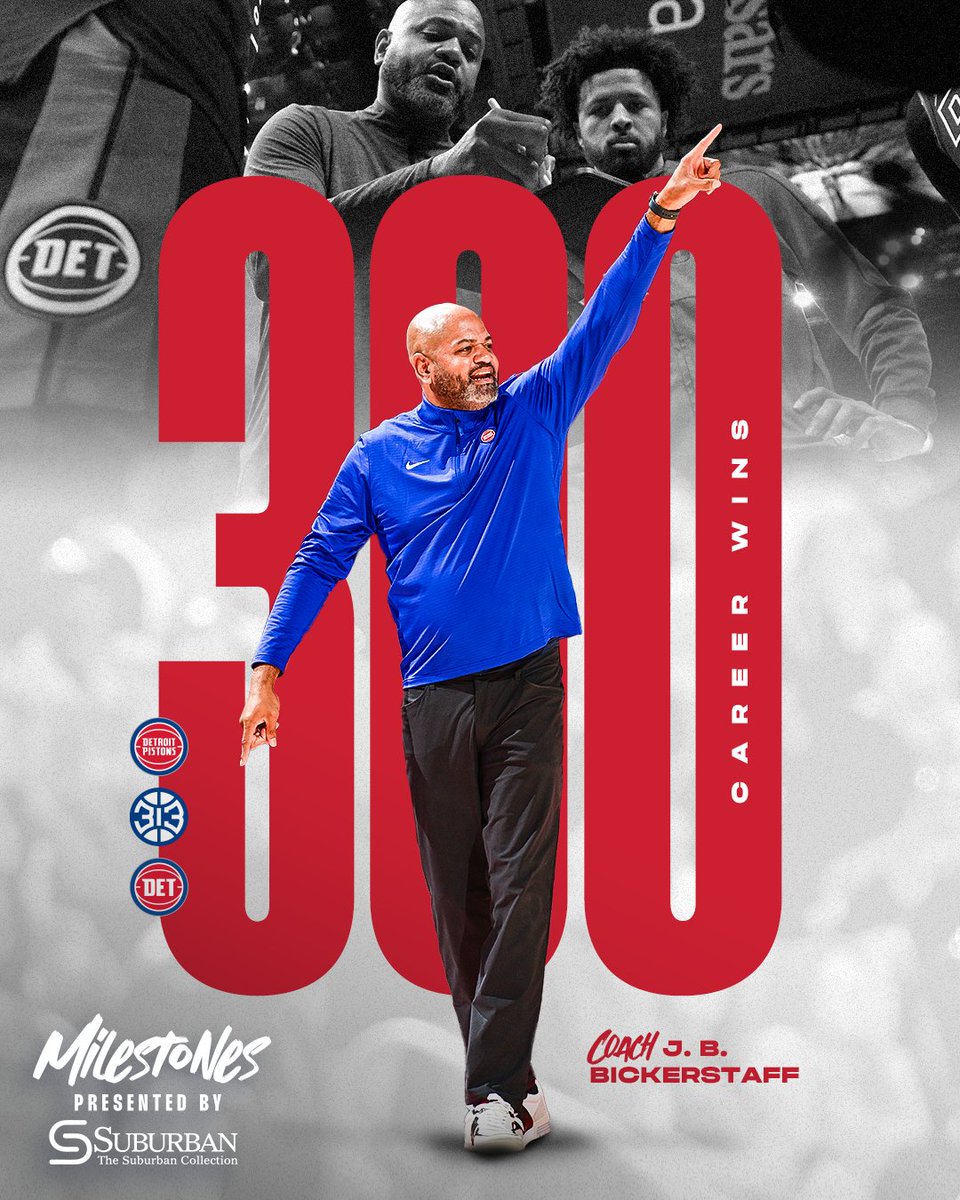 “恭喜主帥收獲執教生涯第300場(chǎng)常規賽勝利??!板雙”活塞官方附文道。喜臨喜主