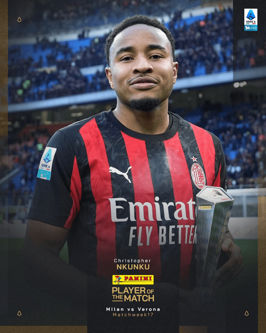 [流言板]梅開(kāi)二度!意甲官方:恩昆庫當選米蘭vs維羅納全場(chǎng)最佳球員