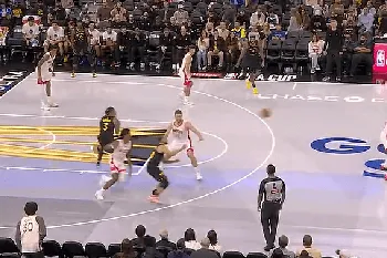 第三節比賽,流言里吸理查庫里吸引包夾腦后一拋,板庫助攻理查德后仰跳投命中。引包仰跳