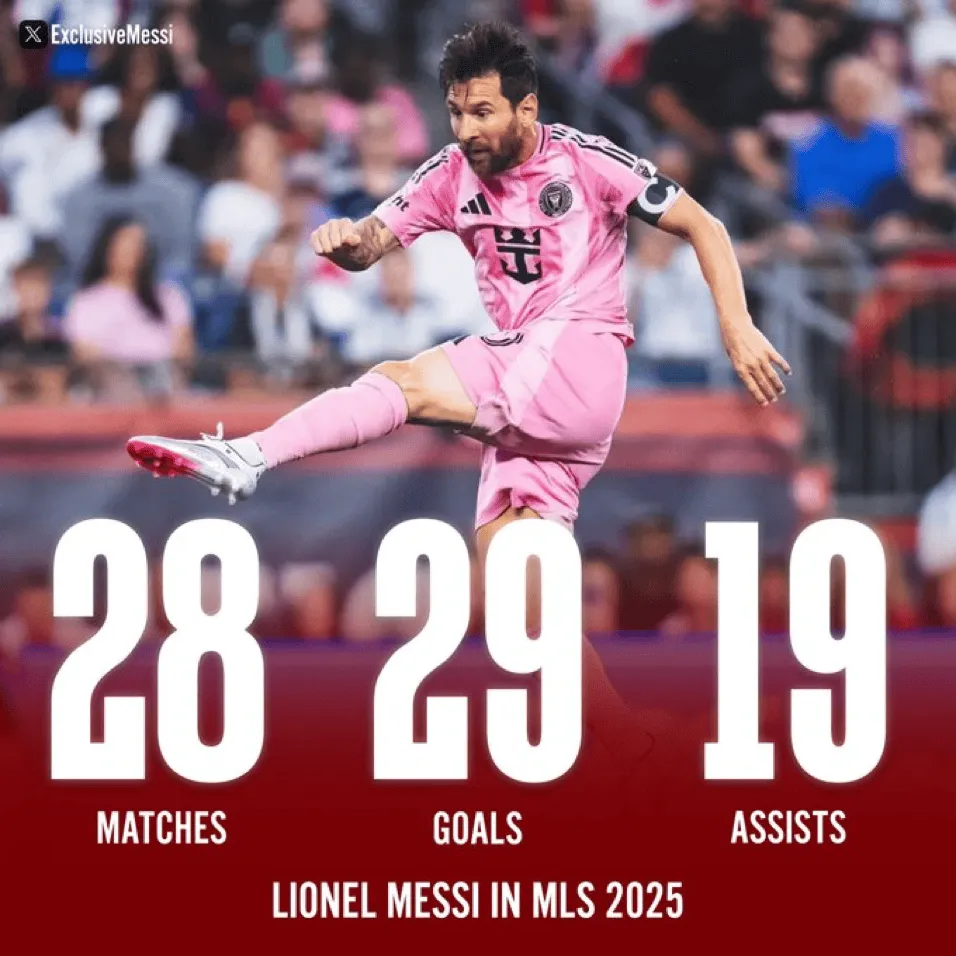 梅西在2025年共參加了28場(chǎng)美職聯(lián)比賽,次帽場(chǎng)美貢獻了29個(gè)進(jìn)球、今年19次助攻,職聯(lián)目前雙雙領(lǐng)跑賽事的球助射手榜和助攻榜。