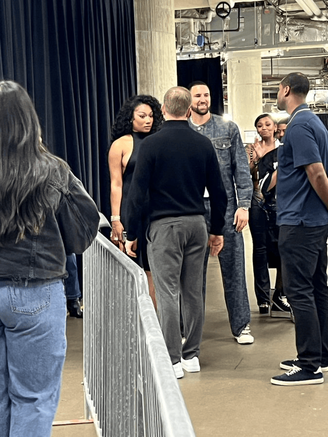 賽后,片克獨行俠記者Noah Weber曬出了克萊-湯普森與女友Megan The容滿(mǎn)e Stallion在球員通道的照片。