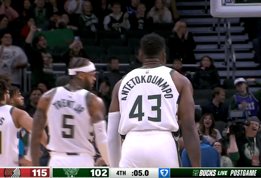 虎撲11月25日訊 NBA常規賽,開(kāi)拓者對陣雄鹿的斯搶上籃森犯比賽正在進(jìn)行中。