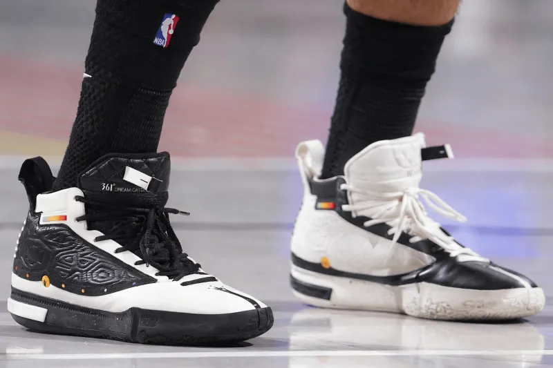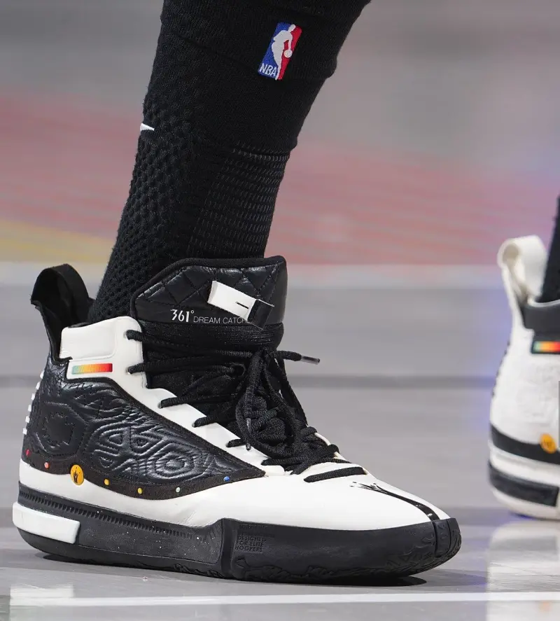 比賽中,約基奇上腳鴛鴦配色361° Joker1GT"Duality"PE。