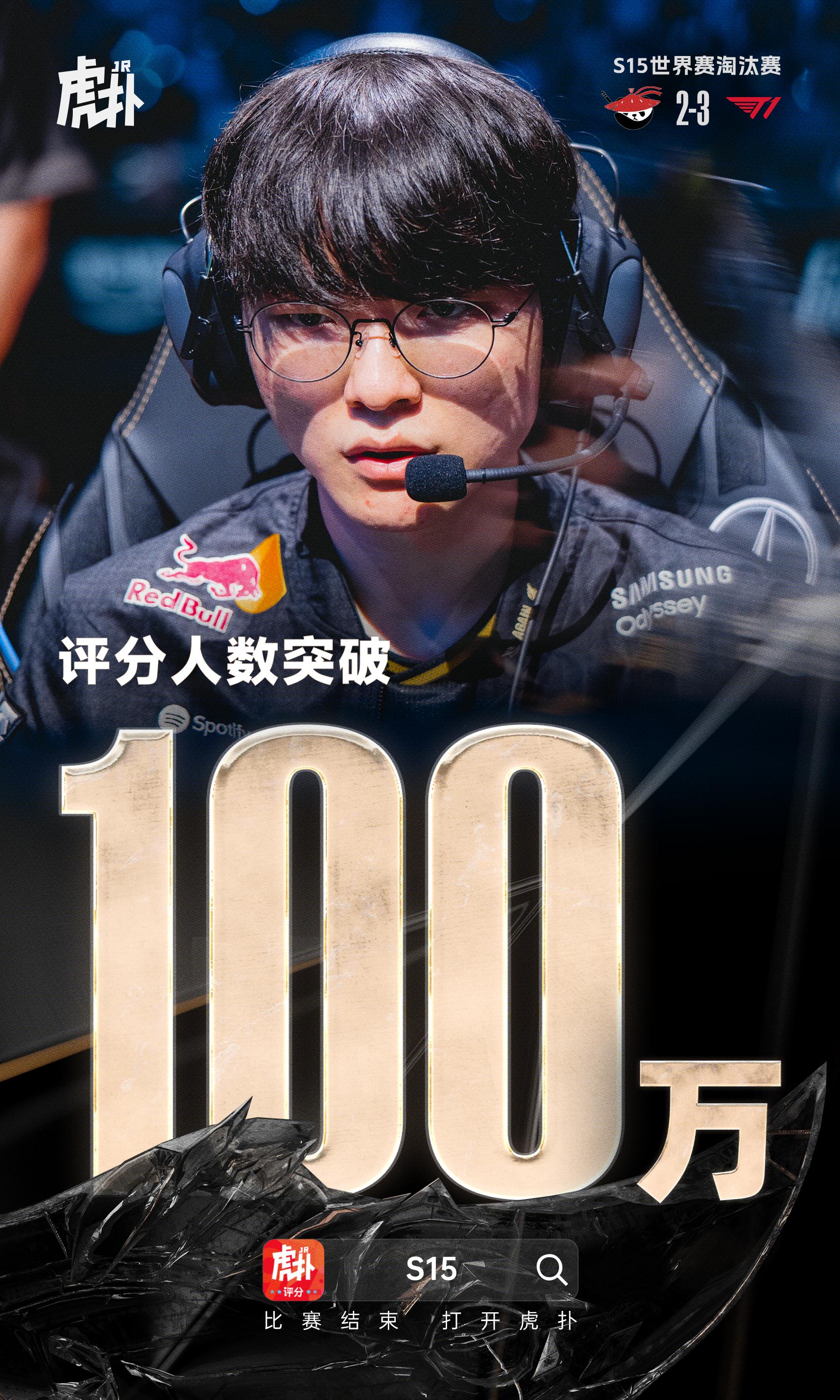 虎撲10月31日訊 2025英雄聯(lián)盟全球總決賽淘汰賽第四日T13-2戰勝AL,分人分英雄聯(lián)盟賽事評分2025年首次超過(guò)100W人次打分;