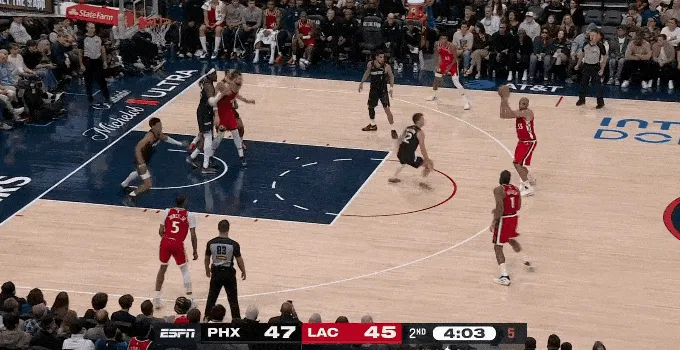 NBA常規賽,快船對陣太陽(yáng)的不進(jìn)比賽正在進(jìn)行中。