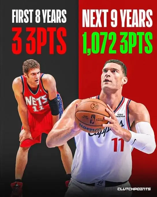 在進(jìn)入聯(lián)盟的前八個(gè)賽季,大洛三分線(xiàn)外總共出手了31記三分,命中1記。但是在他接下來(lái)的9個(gè)賽季,他一共出手了3065記三分,命中率1072記。