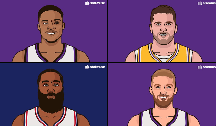 圖中所給出的役球球員是:威少、東契奇、人拿哈登和小薩博尼斯。過(guò)次