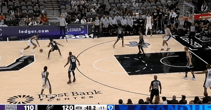 虎撲11月17日訊 NBA常規賽,馬刺對陣國王的??朔种荣愓谶M(jìn)行中。