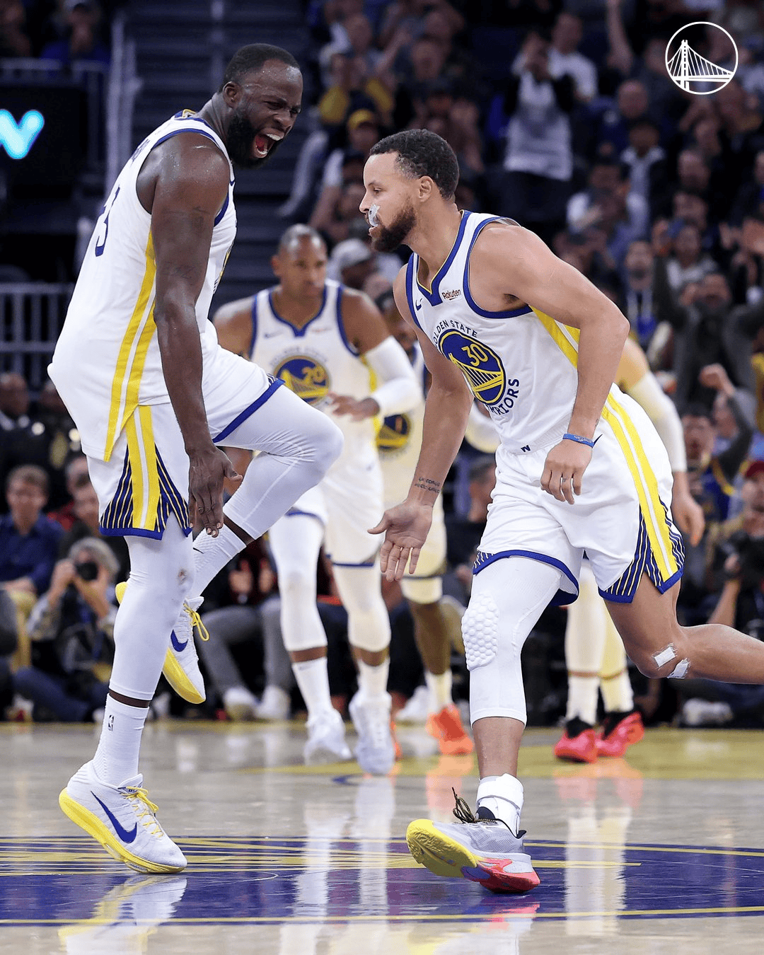 賽后,德雷勇士官方更新社媒分享庫里和德雷蒙德-格林的流言里和慶祝照。