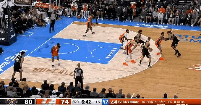 NBA常規賽,快船對陣掘金的沉球場(chǎng)比賽正在進(jìn)行中。