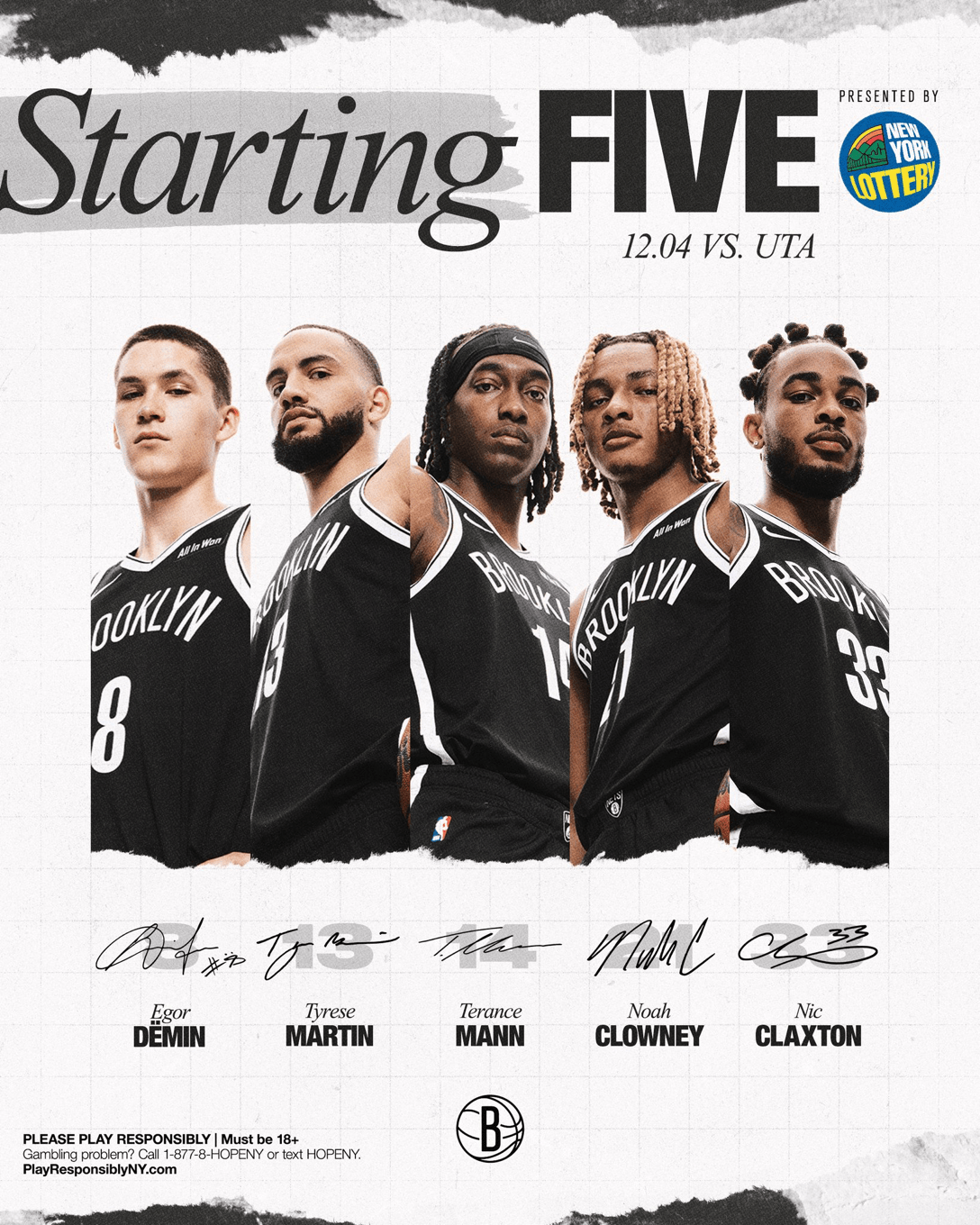 籃網(wǎng)首發(fā):杰明、丁特馬丁、流言倫特倫斯-曼、板籃克洛尼、網(wǎng)首克拉克斯頓