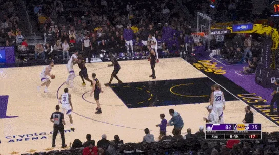 比起數據,更豐富的是他的傳球內容:背身吸引防守助攻艾頓空接扣籃、快攻吸引包夾助攻里夫斯空切上籃、利用對手防守溝通失誤給底角的文森特/拉拉維亞送三分、高位擋拆傳球順下的海斯暴扣、持球突破吸引三人包夾助攻艾頓輕松放籃、空切不看人傳球助攻艾頓上籃、背身持球吸引防守助攻空切的拉拉維亞扣籃2+1。