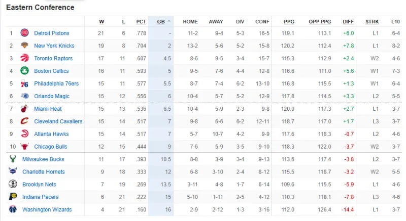 目前戰績(jì)15勝14負位列東部第八,3連敗也和步行者并列東部最長(cháng)連敗。