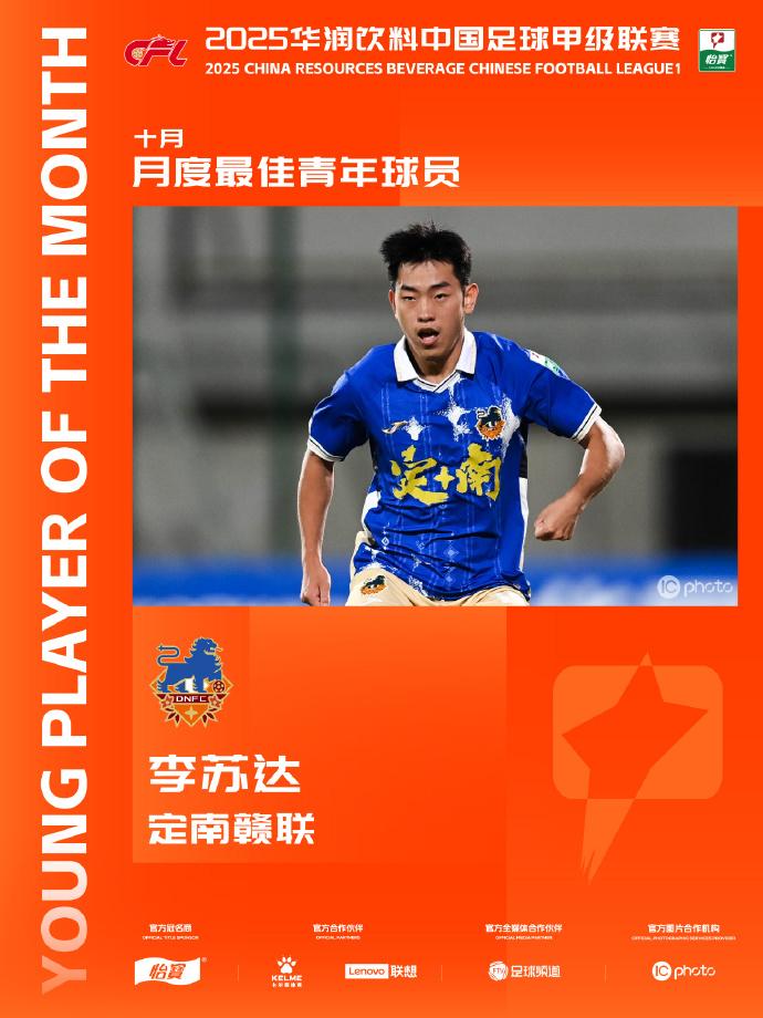 虎撲11月27日訊 中甲聯(lián)賽官方公布了10月最佳青年球員:李蘇達(定南贛聯(lián))