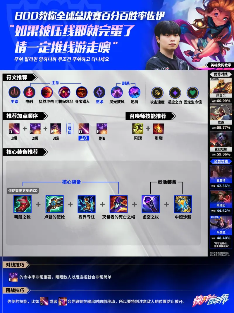 KT.Bdd的「暮光星靈 佐伊」作為全球賽百分百勝率的佐伊提醒你,推線(xiàn)游走抓機會(huì )才是制勝的秘籍,別光在那一直P(pán)oke一直爽,讓人壓線(xiàn)就完蛋了!