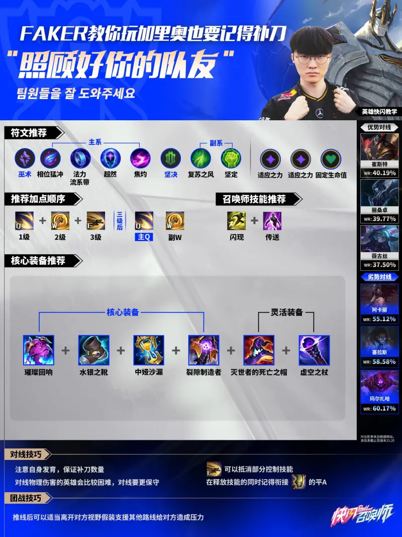 T1.Faker的「正義巨像 加里奧」教你想要成為能夠全球支援的團隊守護神加里奧,首先要記得補刀哦,至于想要取勝的話(huà),請務(wù)必“照顧好你的隊友”。