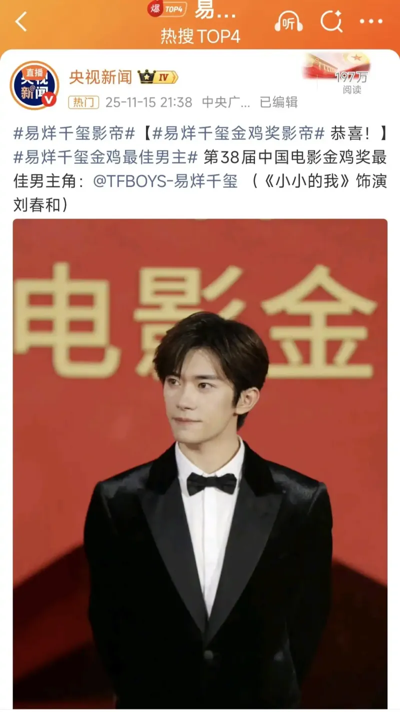 24歲影帝,歲影視易烊千璽這是帝易t的地位要奔著(zhù)中國影視goat的地位發(fā)起沖擊了由8884844大超牌手機 發(fā)表在步行街主干道 https://bbs.hupu.com/topic-daily