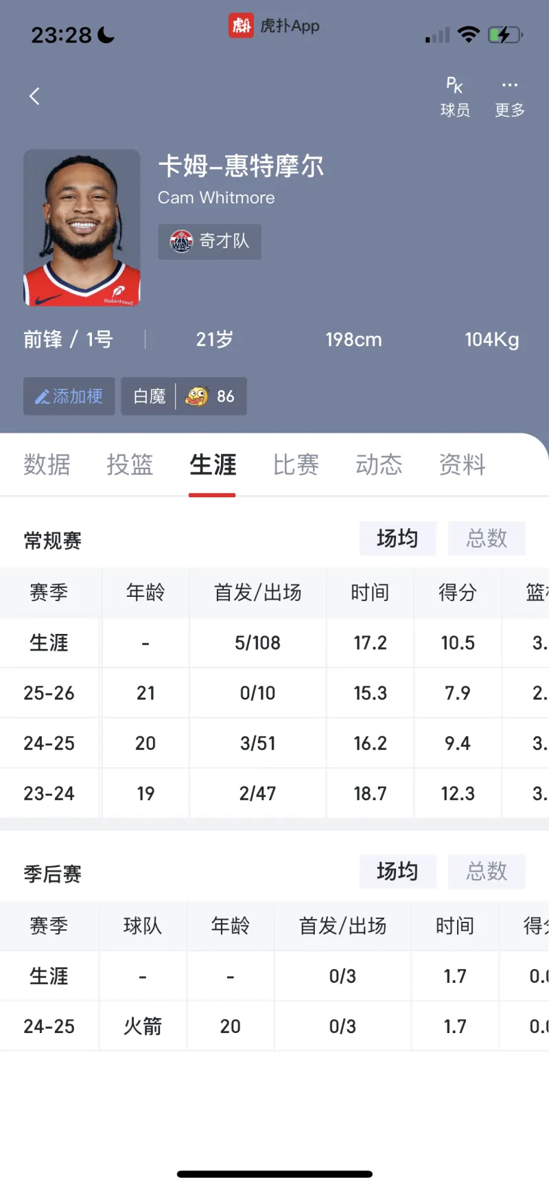 惠特摩爾在奇才機會(huì )并不多。甚至上一場(chǎng)出場(chǎng)時(shí)間只有五分鐘不到,如果有球權,也能像小托馬斯那樣刷出不錯的數據。但這種持球手,最高的定位也就第六人,留在火箭,可能機會(huì )不一定很多,但畢竟是母隊和烏杜卡真的會(huì )驅使不斷進(jìn)步。