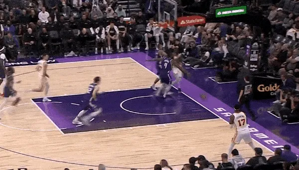 NBA常規賽,老鷹客場(chǎng)對陣國王的津吉進(jìn)分比賽正在進(jìn)行中。