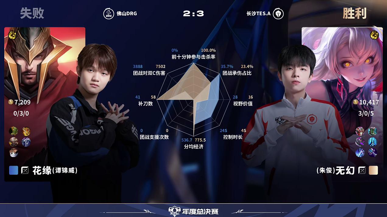 虎撲10月07日訊 TES/DRG第5局數據對比:藍桉孫權幾乎包圍夢(mèng)嵐蒼。