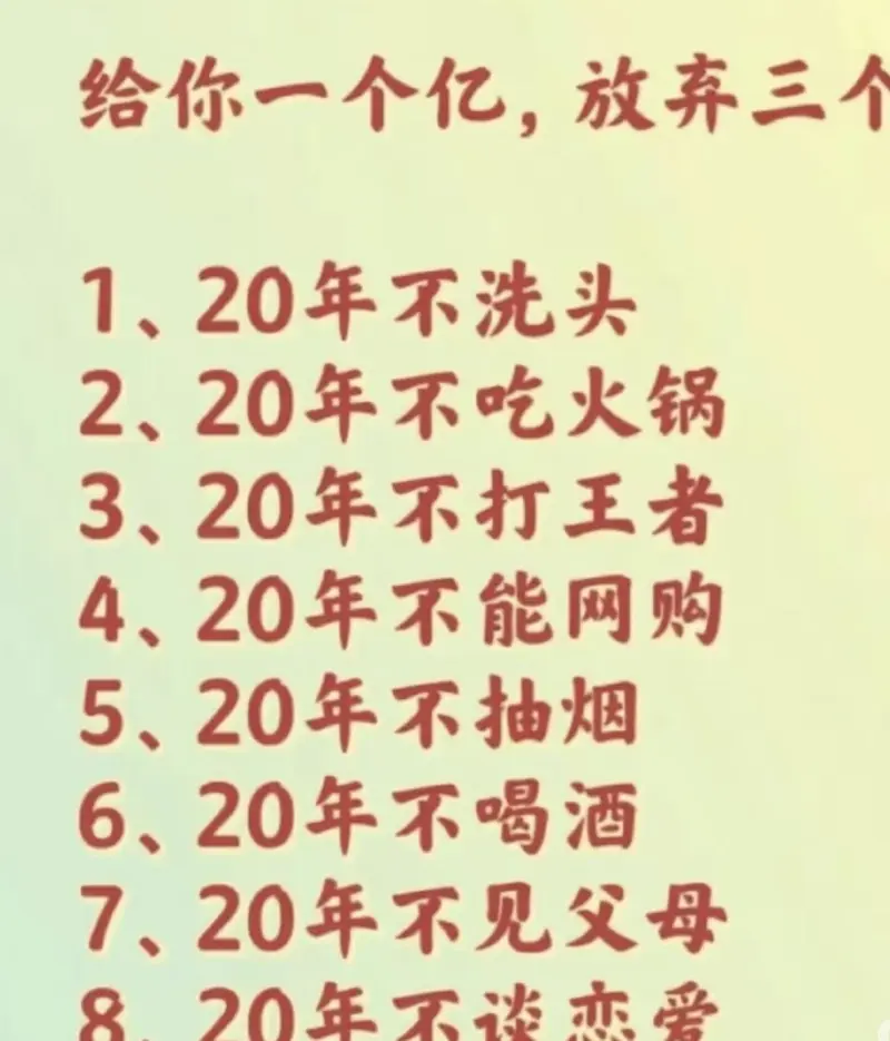 假如給你一個(gè)億,你會(huì )放棄哪三個(gè)?
