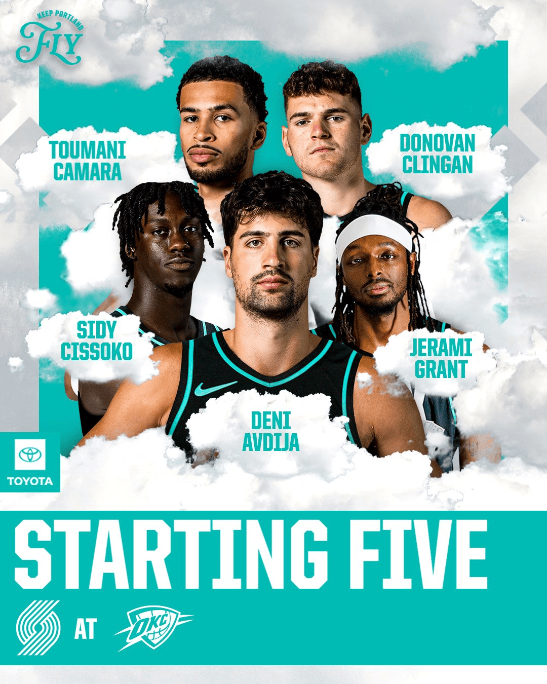 開(kāi)拓者今日首發(fā):德尼-阿夫迪亞、西迪-西索科、圖馬尼-卡馬拉、杰拉米-格蘭特、多諾萬(wàn)-克林根。