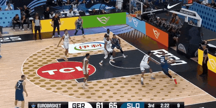 虎撲09月11日訊 男籃歐洲錦標賽1/4決賽,斯洛文尼亞對陣德國的奇空球分比賽正在進(jìn)行中。