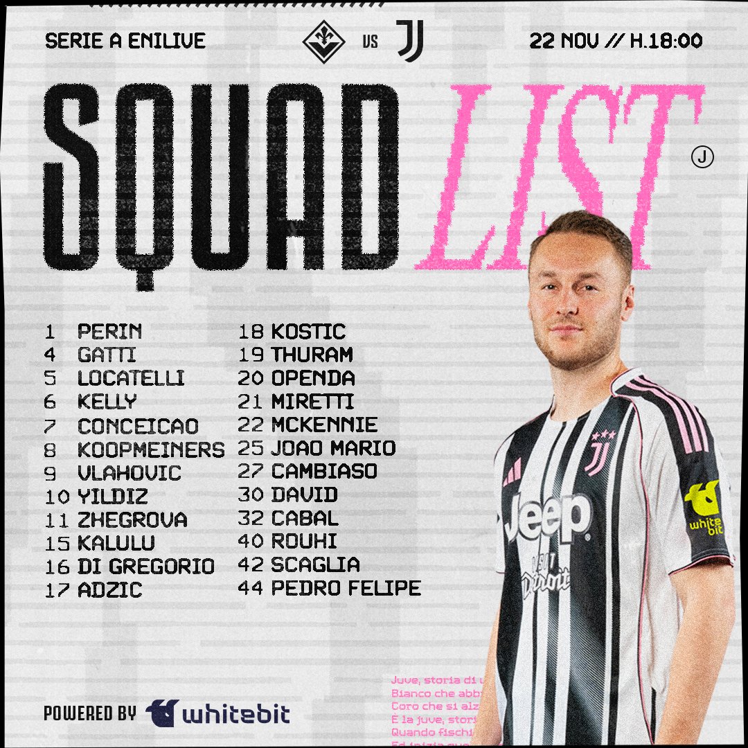 虎撲11月22日訊 尤文圖斯即將在意甲第12輪客場(chǎng)對陣佛羅倫薩,尤文官方公布了本場(chǎng)比賽大名單,佛羅弗拉霍維奇在列,大名單弗凱利和卡瓦爾傷愈復出?;貧w