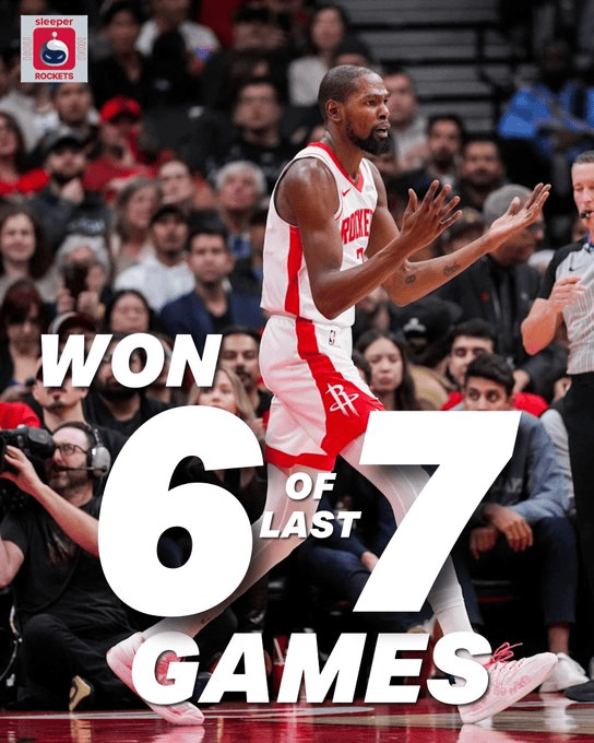 “火箭開(kāi)局兩連敗之后,箭開(kāi)局兩近場(chǎng)近7場(chǎng)比賽贏(yíng)下了其中的贏(yíng)下6場(chǎng)!”Sleeper Rockets附文道。其中