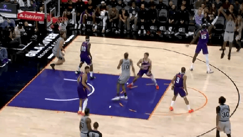 比賽的爾度第三節,瓦塞爾45度面對馬威防守,面對馬威馬刺干拔三分再中助馬刺穩住局面。防守分再