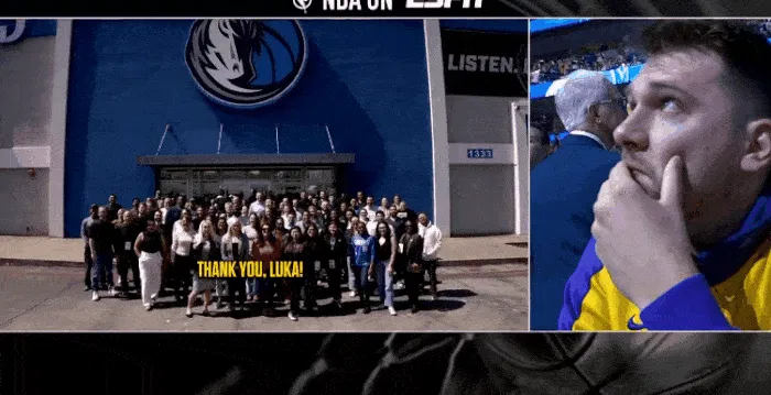 獨行俠賽前播放東契奇致敬視頻,東契奇嘴唇顫抖并擦拭眼淚。