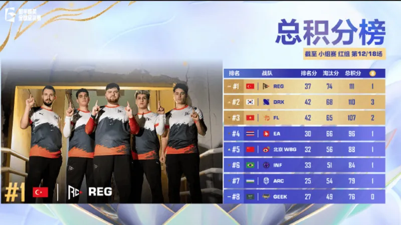 [流言板]12月3日積分榜:DRX今日兩雞來(lái)到榜二,REG111分暫居榜一