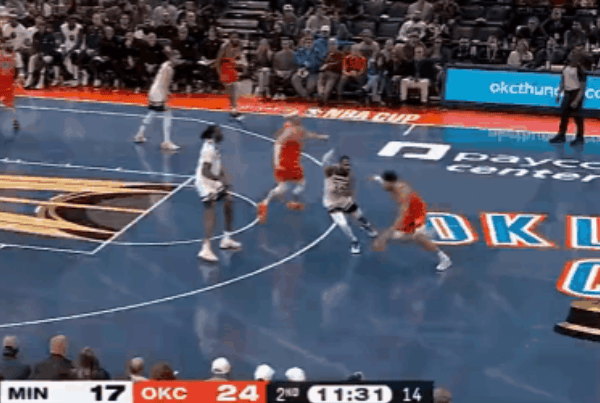 虎撲11月27日訊 NBA杯小組賽,森林狼對陣雷霆的華茲比賽正在進(jìn)行中。