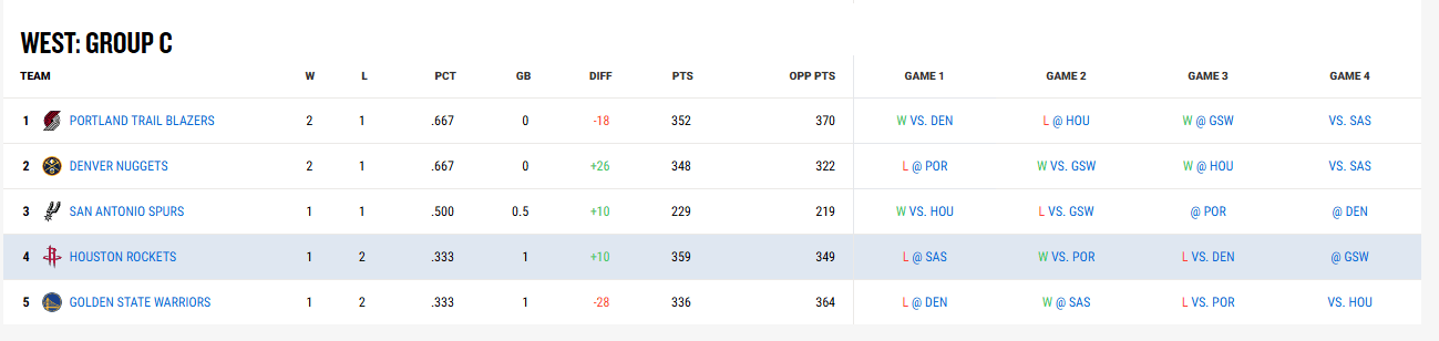 目前西部C組,箭勇將直接對勇士和火箭皆為1勝2負;